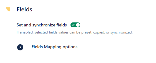 When the option is enabled, the Fields Mapping options subsection is available to select which fields from the source issues must be copied and potentially synchronized with the copied issue.