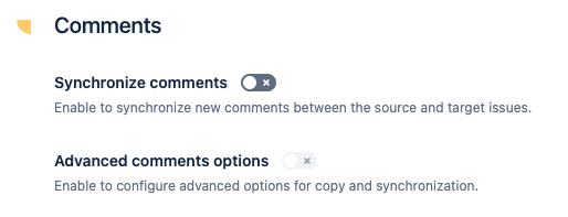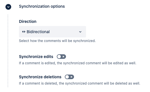 This section lets you configure how comments are synchronized between the source issue and the target issue.