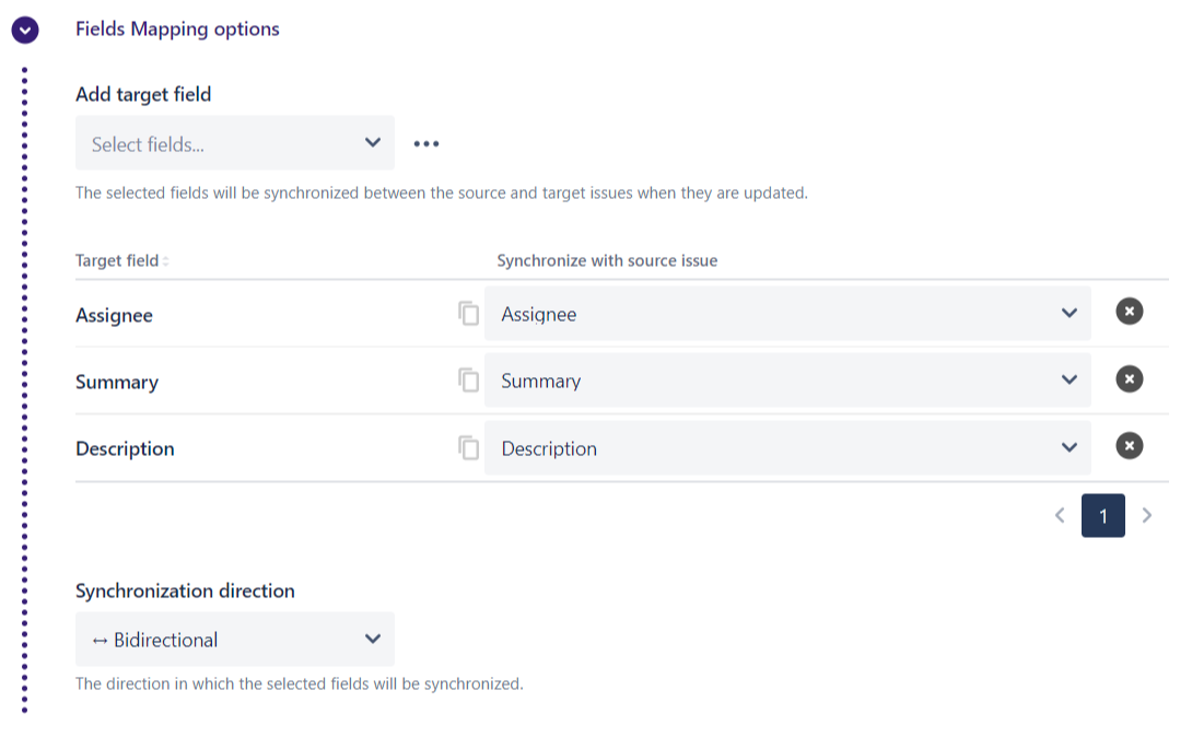 From Source to Target: If a field is updated in the source issue, the new value will be synchronized into the mapped field in the target issue.