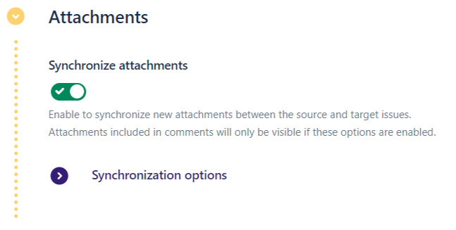 This section lets you configure how attachments are synchronized between the source issue and the target issue.