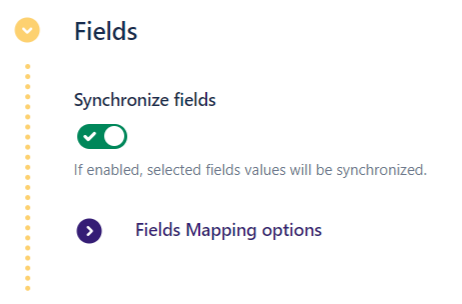 When the option is enabled, the Fields Mapping options subsection is available to select which fields from the source issues must be synchronized with the copied issue.