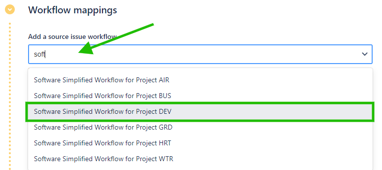 In this example, we want to copy DEV-1, so we need to select the workflow used by this issue : "Software Simplified Workflow for Project DEV".