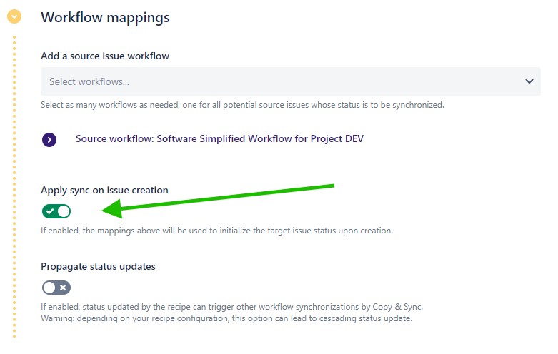 Now we need to specified that we want the copied issue to have the same status as the original one.