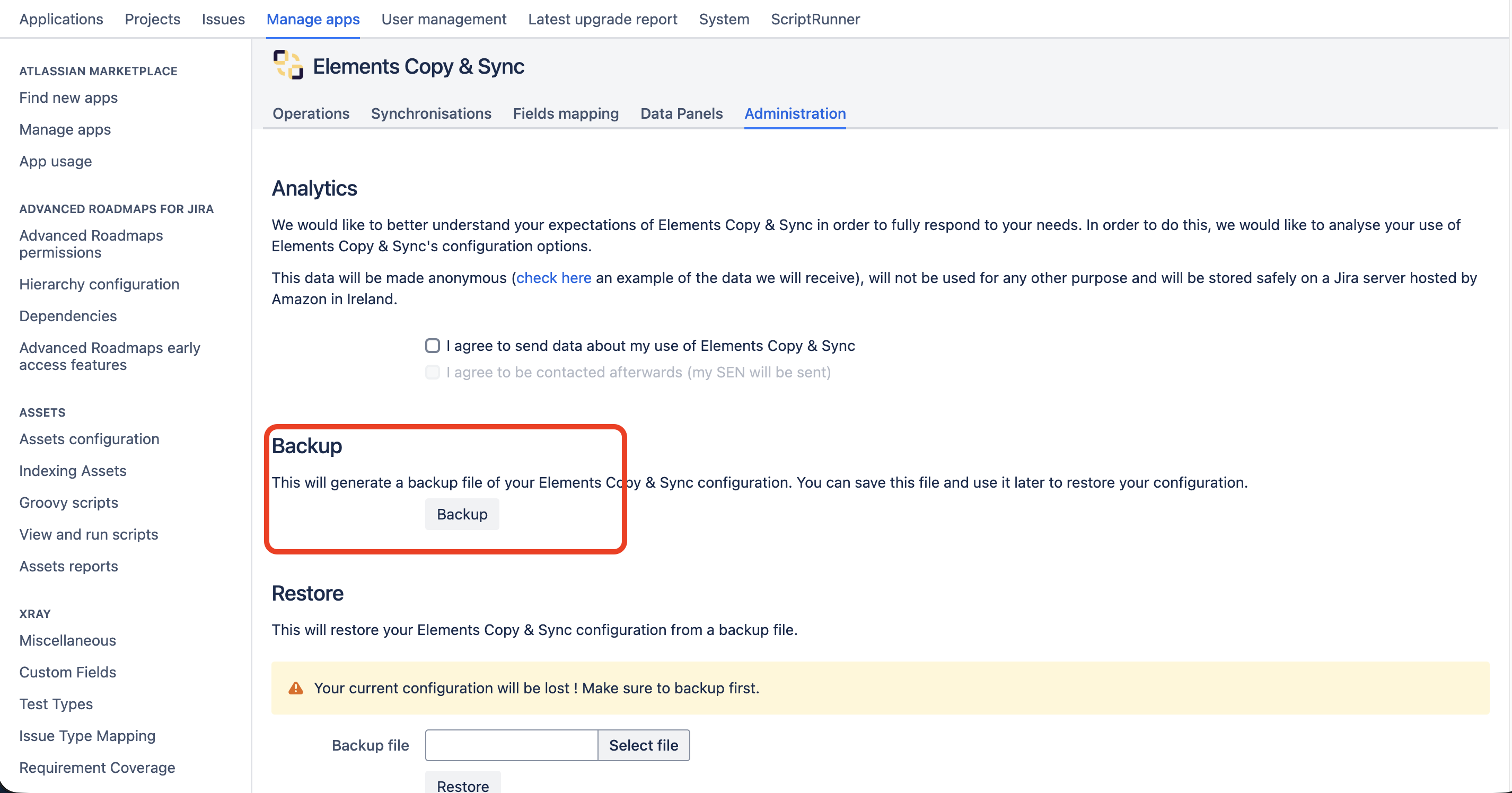 Migrating Elements Copy & Sync with the Jira Cloud Migration Assistant (JCMA) lets you move your configuration from Data Center to Cloud in a supported and structured way. JCMA automatically migrates most Operations, Synchronizations, and Field Mappings, which are recreated in Cloud as Copy & Sync recipes with embedded mappings.