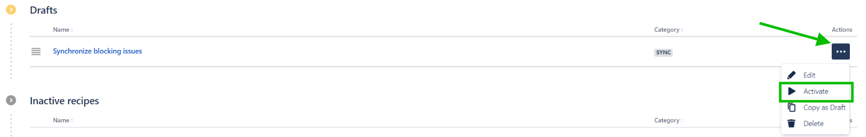 13 - In the "Drafts" section of the recipe listing, use the Activate option.