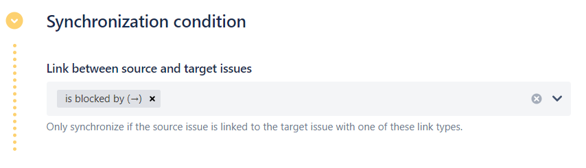 10 - Use the Link between source and target issues option to specify the type of links that must exist between the issues for the synchronization to be possible. At least one type of link is mandatory.