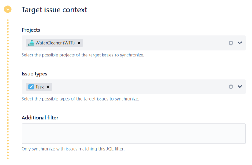 In our example, we will only synchronize Bug tickets from the AirCleaner project.