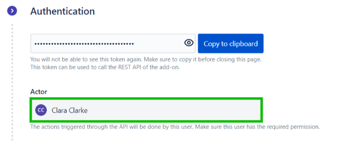 This actor is mandatory, as their permissions will be used by Jira to decide whether actions done through the API calls are authorized or not.