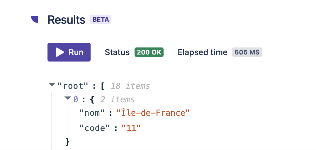 For Custom Fields (CF) and Connected Items (CI) with no dependencies, you can test SQL queries and API calls simply by clicking on “Run” in the results section to verify that the data is fetched correctly and the configurations are accurate.