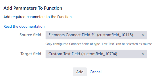 This page explains how to use the Elements Connect post-functions to copy values from Connect fields to Jira Text fields.