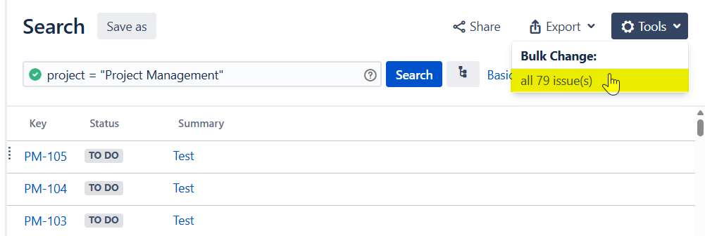 When running the bulk transition, you may notice that the transition appears multiple times (as many times as there are different statuses).