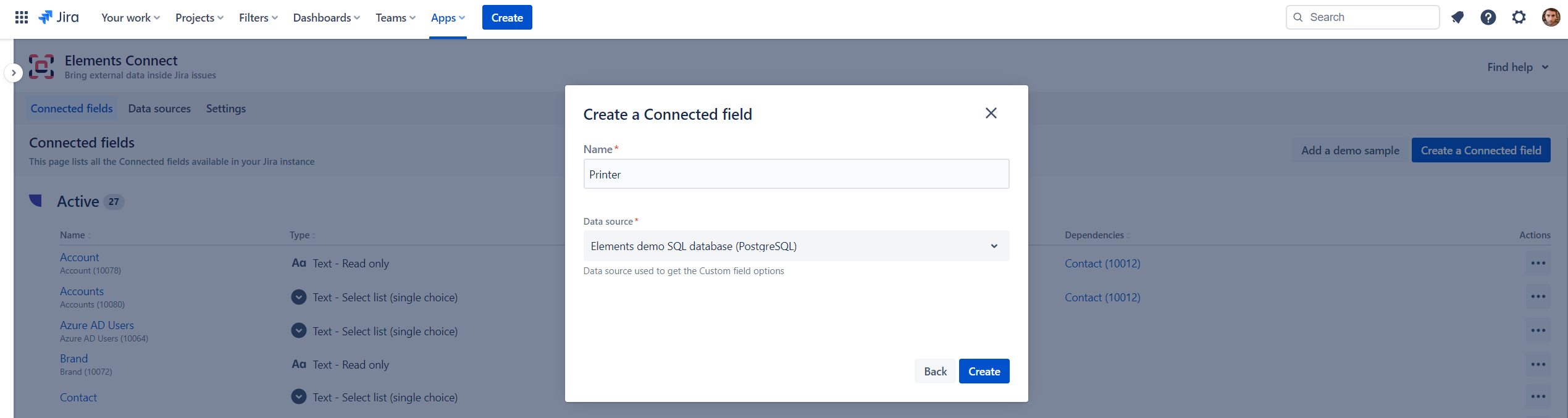After following previous steps, enter a name for your Connect custom field and select the relevant database