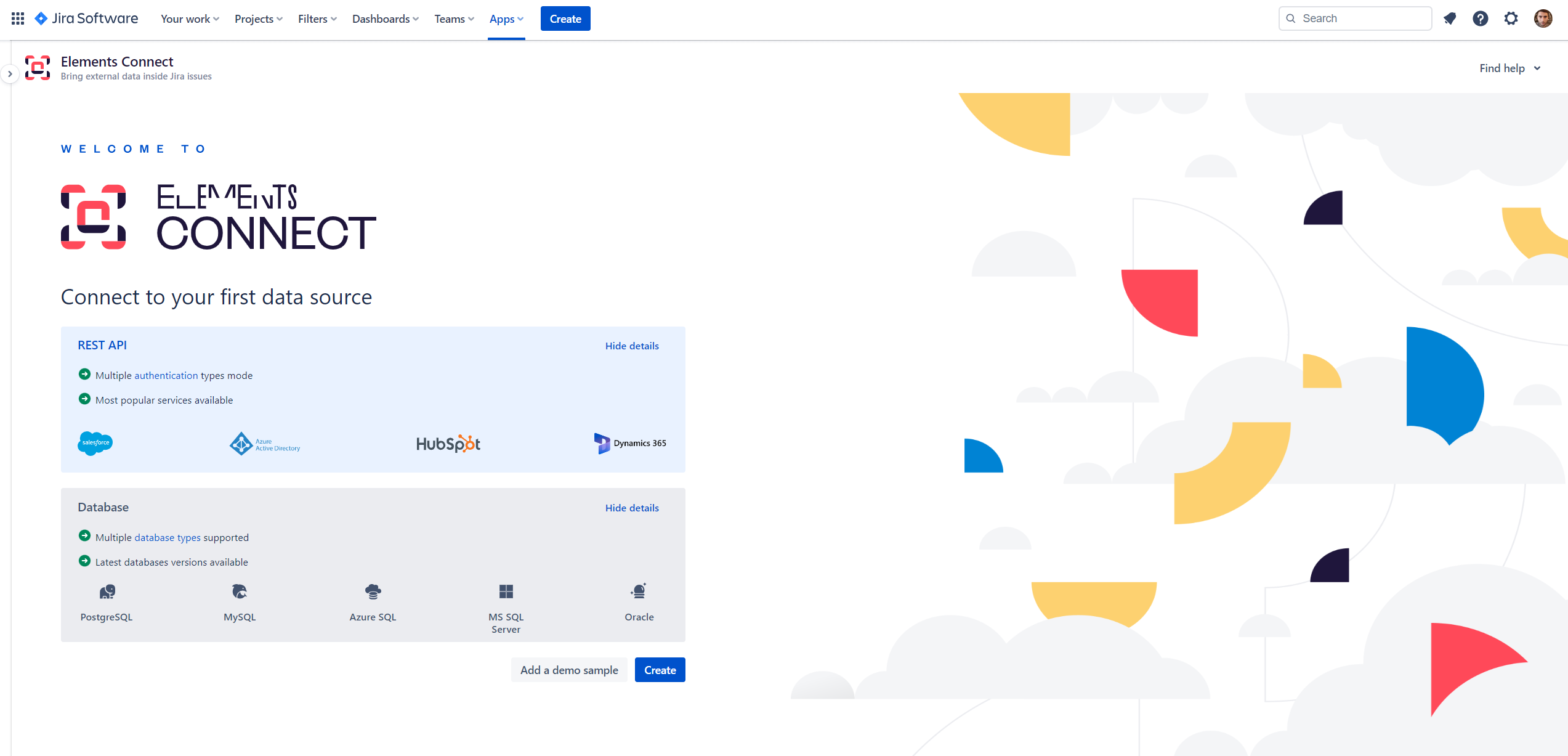 A data source is an external location, typically a database or a remote web/cloud service, from which data can be retrieved by Elements Connect and then used to populate connected fields in Jira.
