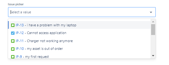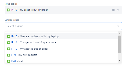 Similar issues - to list issues with the same issue type and status as the issue selected in the "Issue picker" connected item