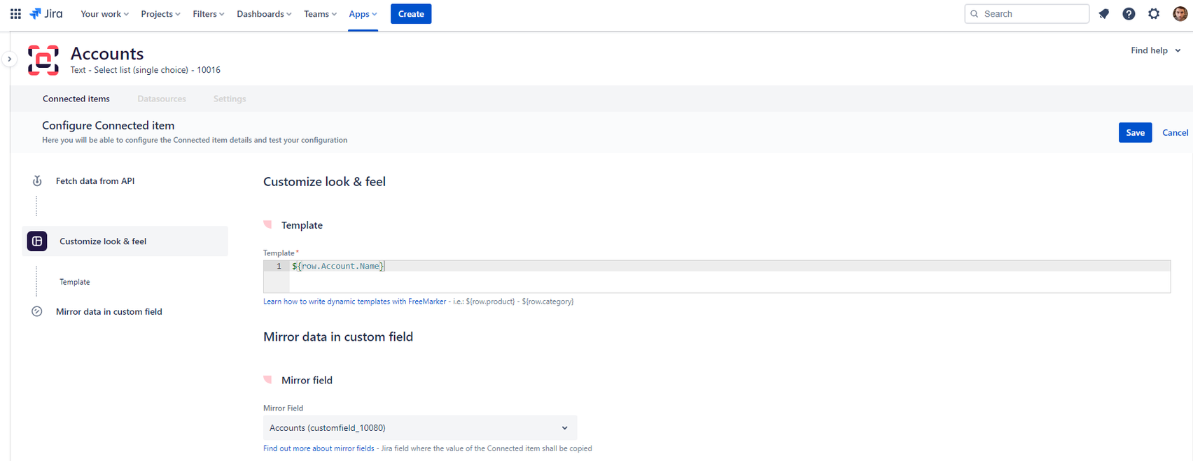 For a given issue, it will be replaced by the Account ID of the selected Account (which is the connected item with the ID 10024 in our case)