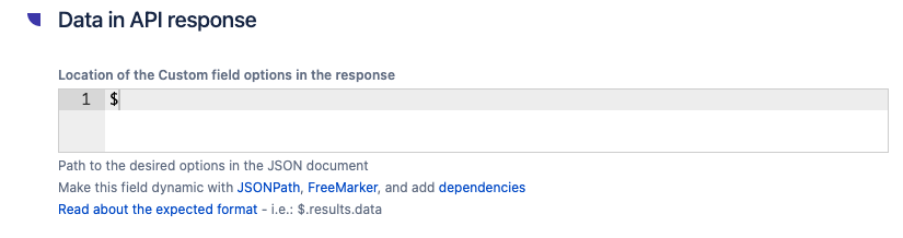This document explains how to use JSONPath in the context of Connected items and Custom fields configured via REST API datasources, in the “Data in API response” field: