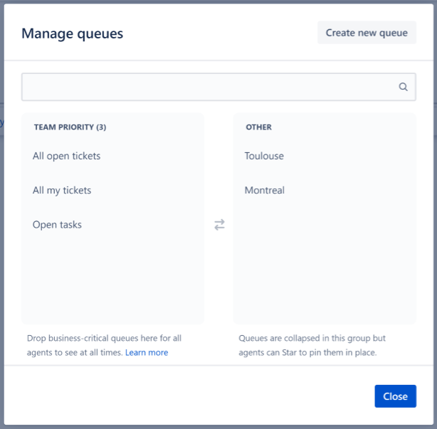 In the Jira Service Management project, we want queues to be organized by office locations.