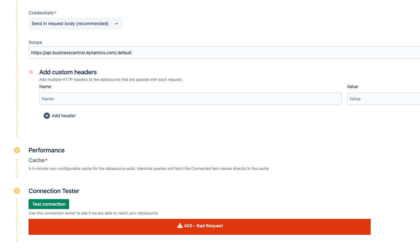 Unable to Read Data from Microsoft Business Central using Elements Connect Cloud