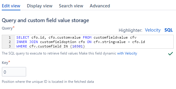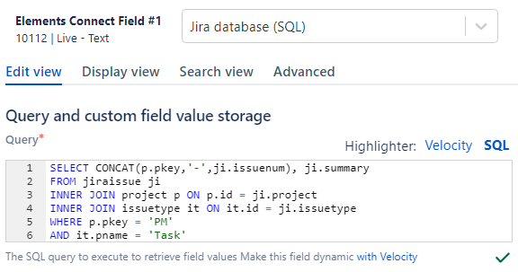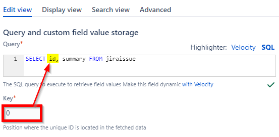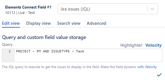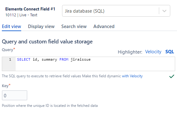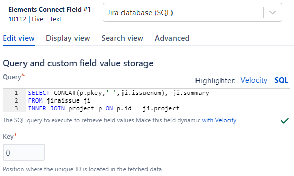 Let's say the Connect field that stores Issue IDs is using the following query: