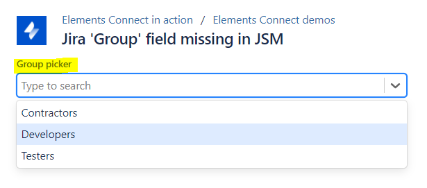 Add a Group picker on Jira Service Management