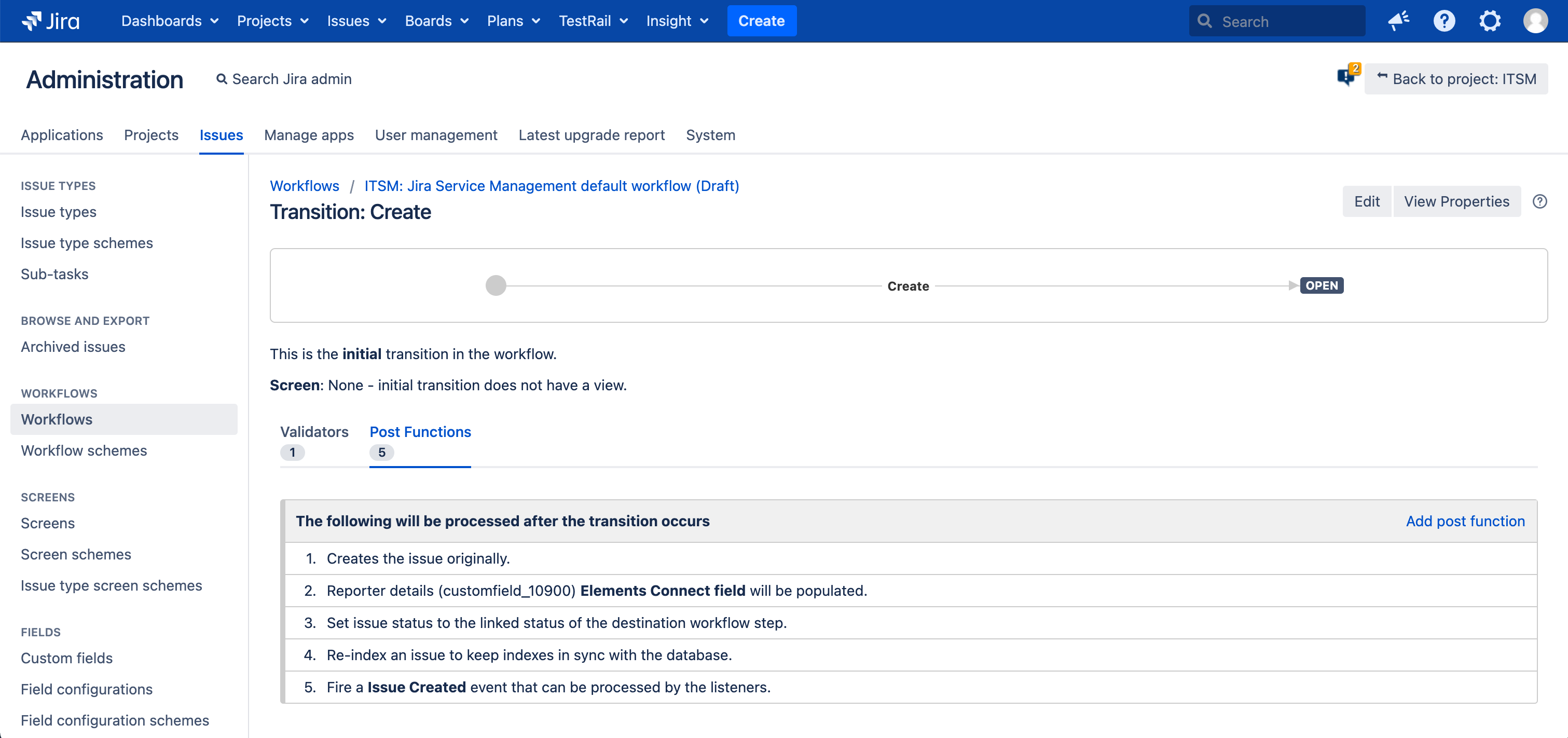 Elements Connect Post function: to set the value of an Elements Connect field from a workflow transition