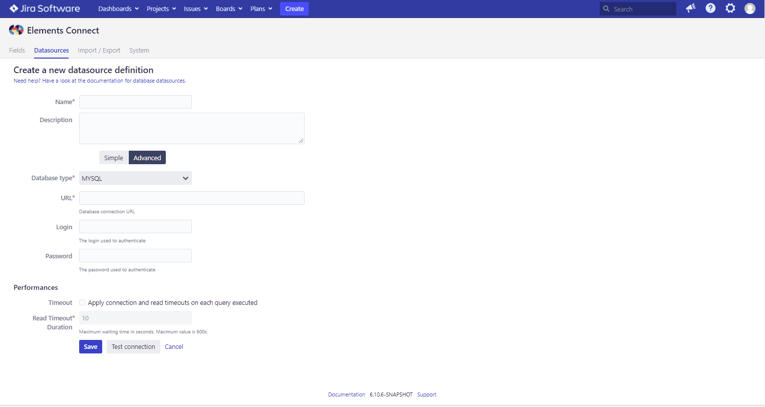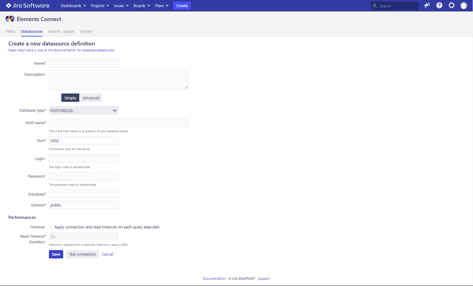 Elements Connect offers two configuration modes for Database datasources, Simple and Advanced.