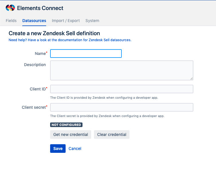 Click on Get new credential to authorise Elements Connect to use the OAuth2 credentials created previously in Zendesk Sell.