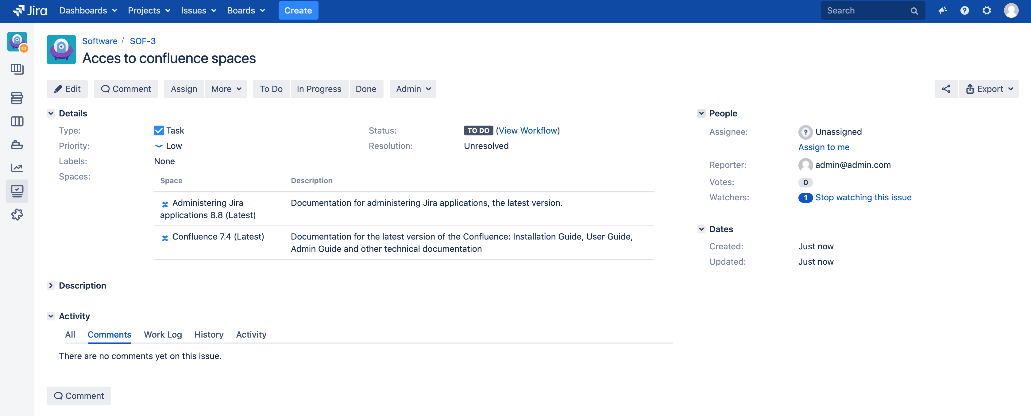Issues view: are displayed the icon, name and description of the selected spaces