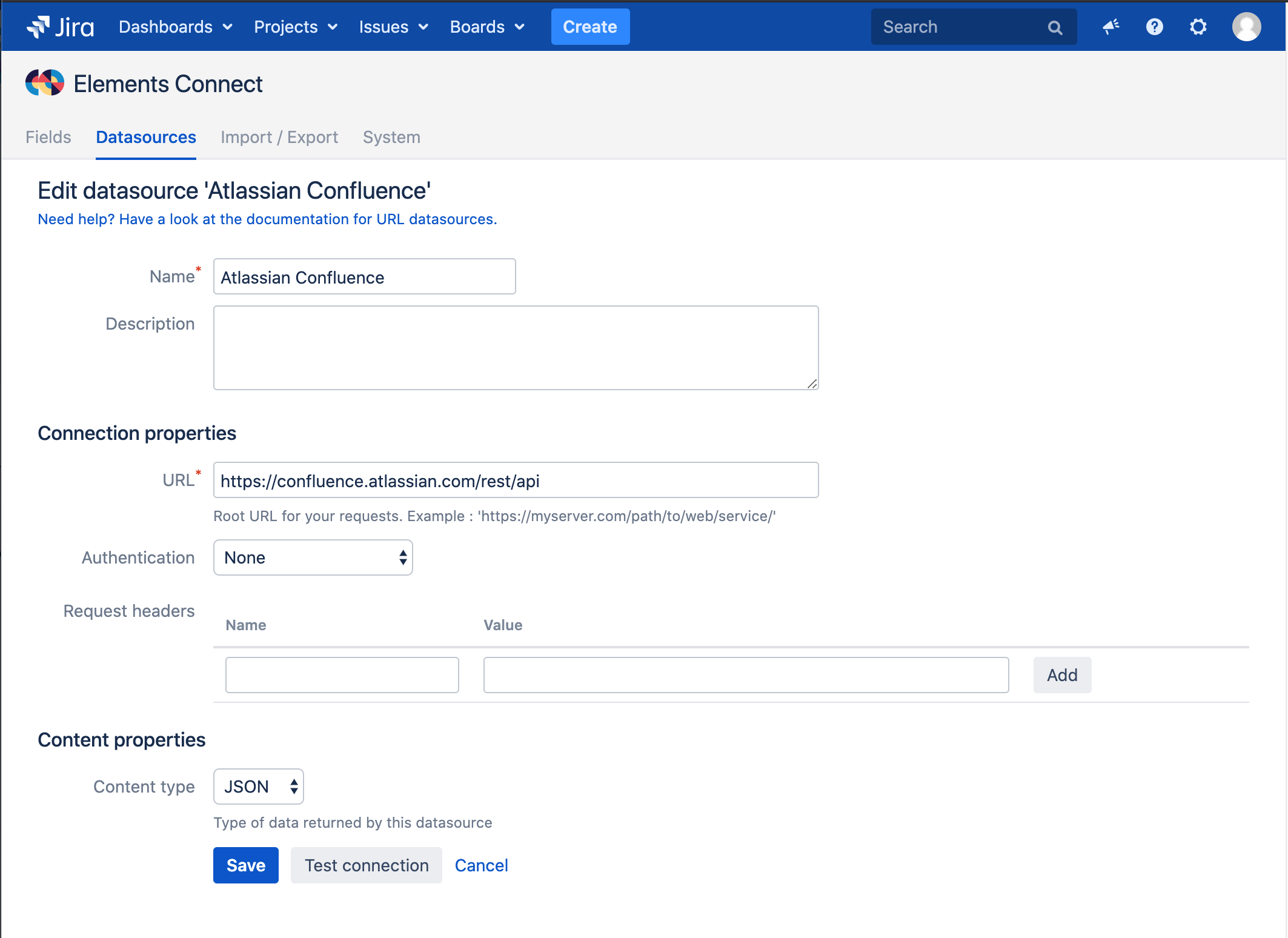 For our demo, we choose the second option - we created a URL connection to Atlassian's Confluence: