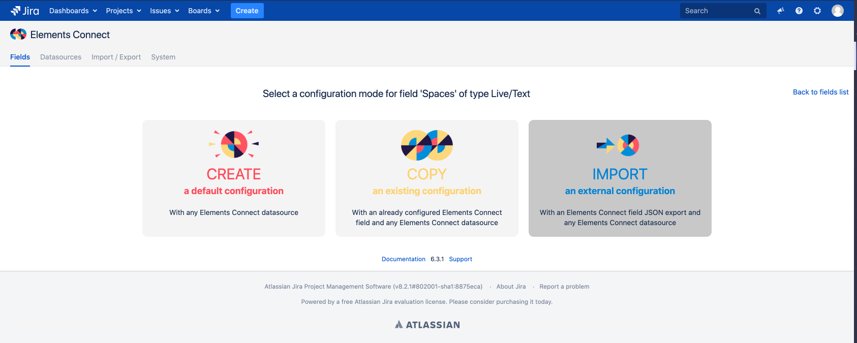Download the field configuration: Spaces_export.json