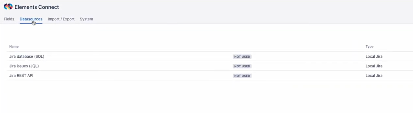 This tutorial uses the Jira Issues (JQL) datasource. As this datasource is already preconfigured in the Elements Connect administration, there is no configuration required and you can use it right away.