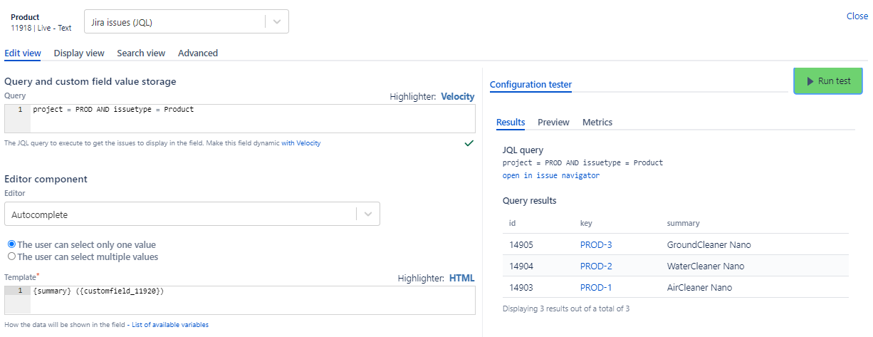 Click on "Import"and that's it! The field is now configured. You can adapt the query and template to your needs.