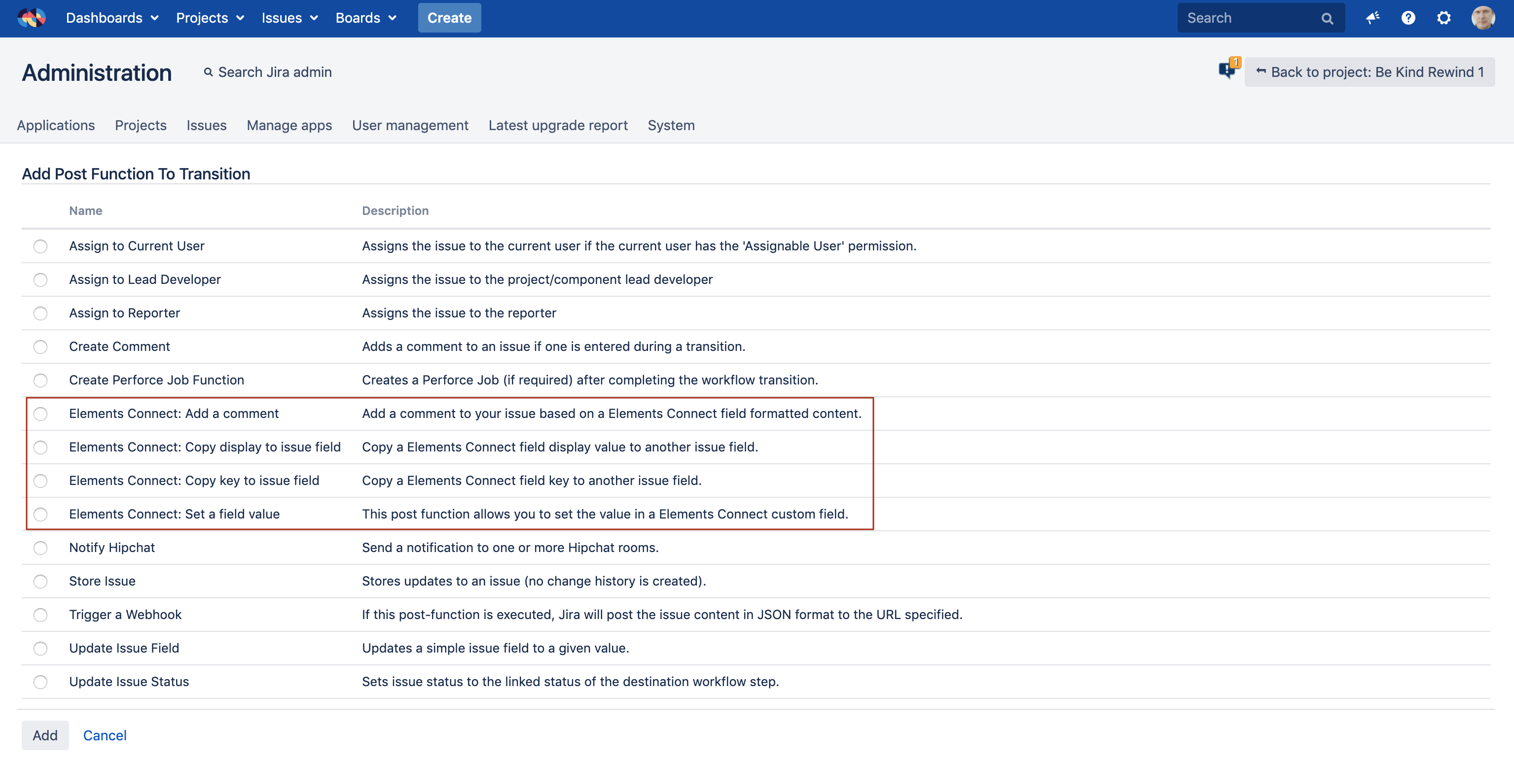 Elements Connect extends Jira workflows capabilities with 4 post functions.