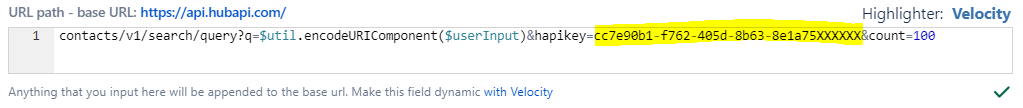 Find your HubSpot API key and add it to your URL path in your field configuration using the hapikey= query parameter.