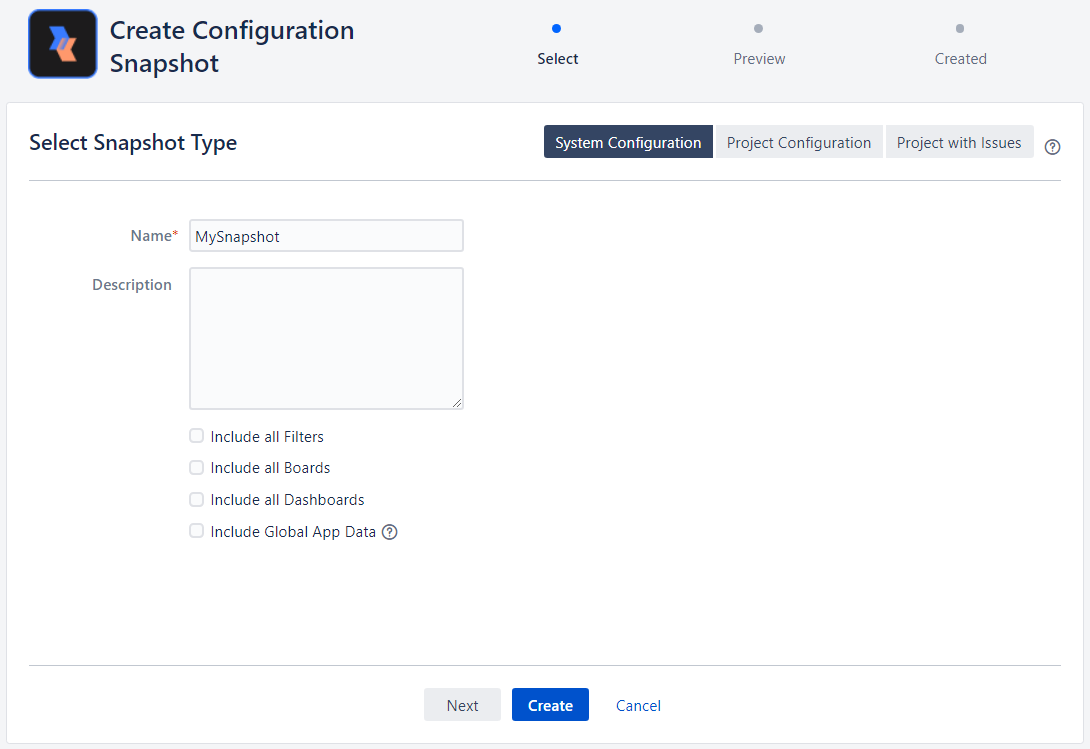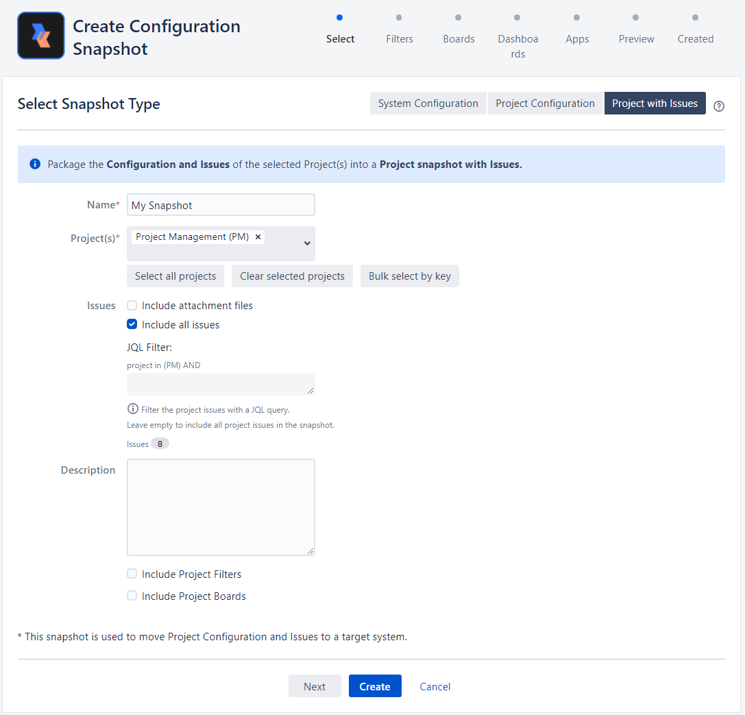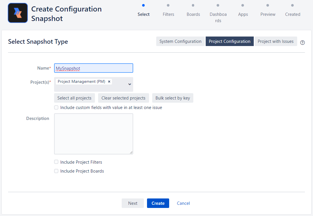 This Snapshot type migrates all Connect fields that are embedded/used in the selected projects, as well as their datasources.