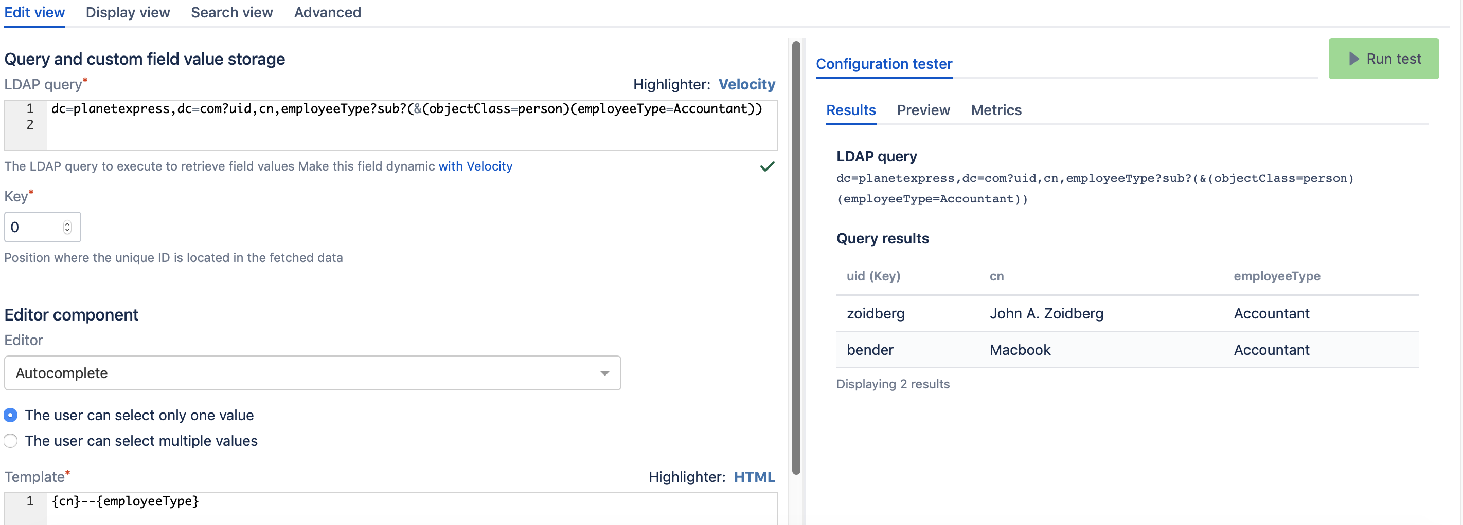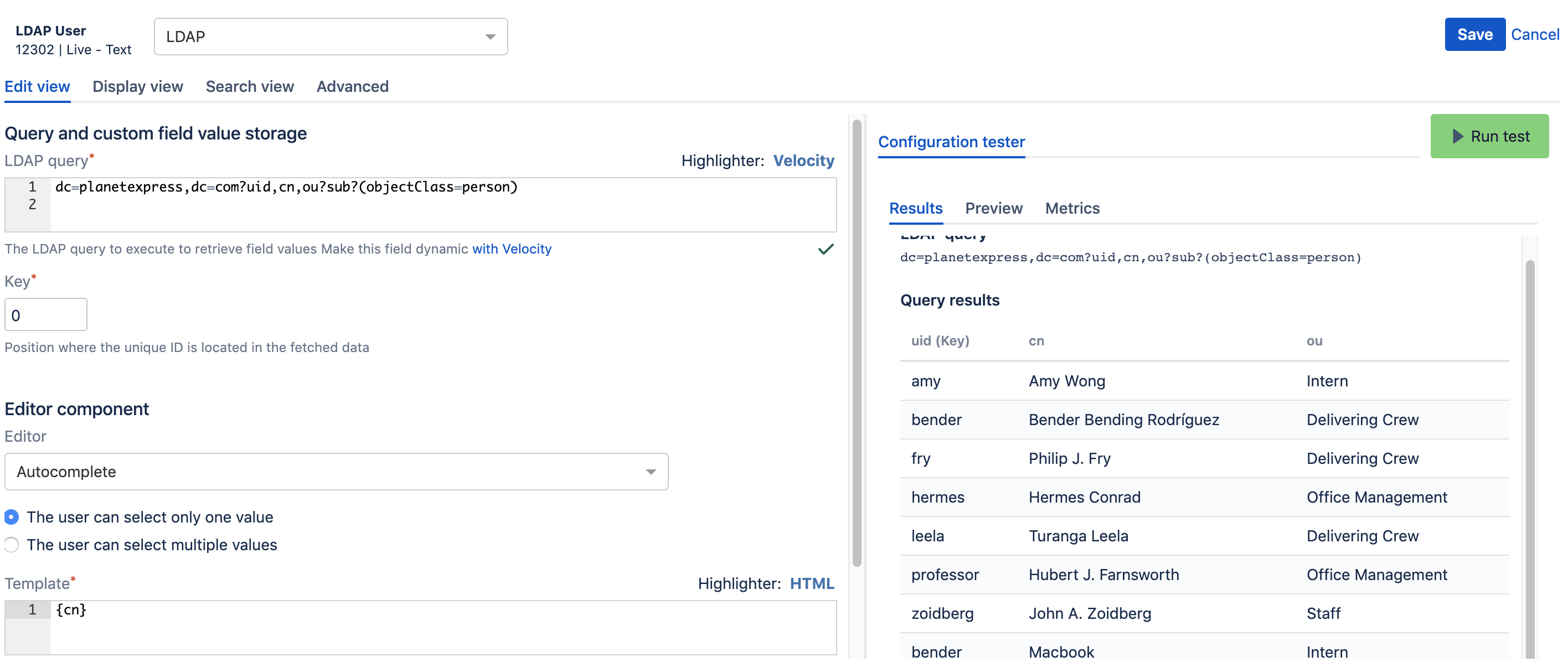 In this example, we tested our query on a test LDAP with the below structure (which will be the datasource for our Elements Connect field).