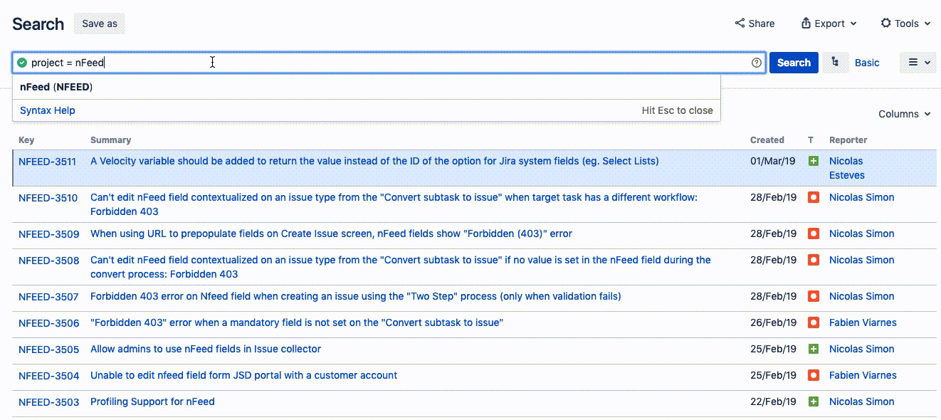 More powerful than the basic search, experienced users can build their own JQL query using advanced operators.
