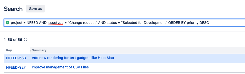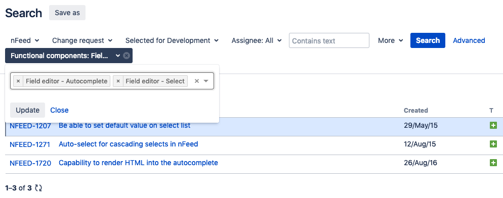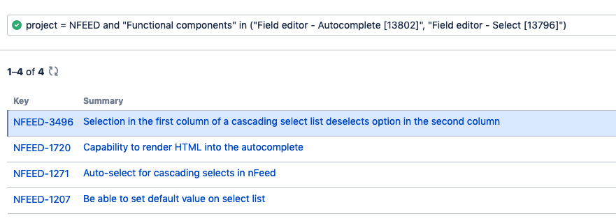 Basic - Convert selected values to JQL The basic query builder generates JQL queries. The conversion of the values selected by users to a JQL query is under the responsibility of the app that provide the field. This query is used to convert this: ![]() into this: ![]() |
