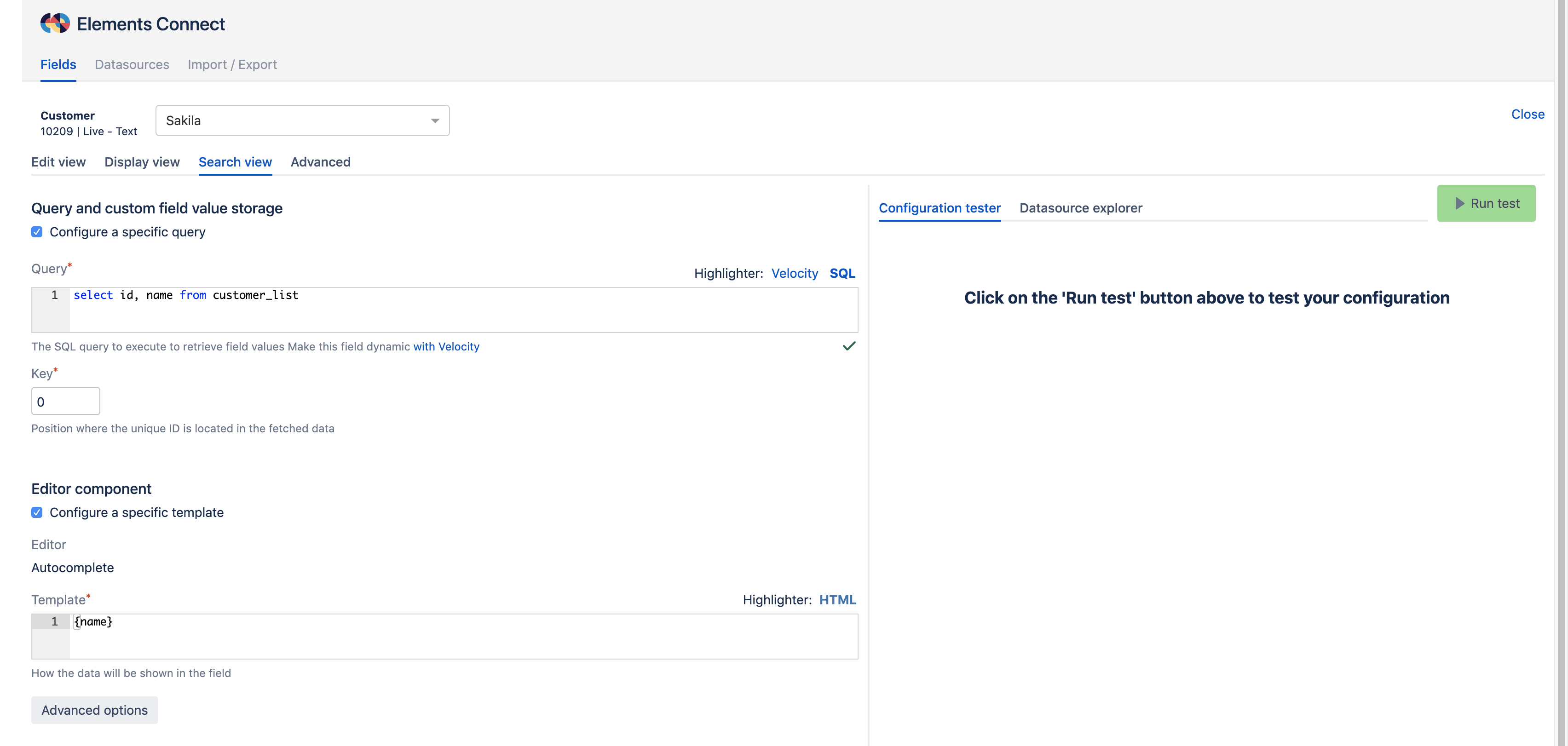 in this example, the field key used in search is | ||||