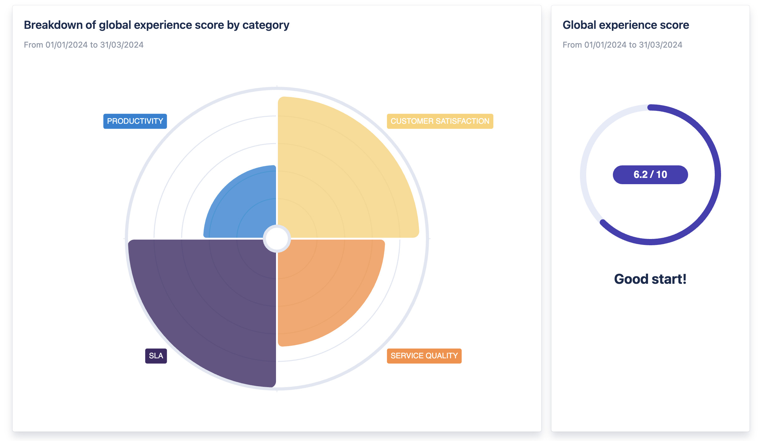 A global experience score will give you an initial reference for assessing your IT services. Split in fours main categories, you’ll be able to delve into the Insights section to better understand your grade.
