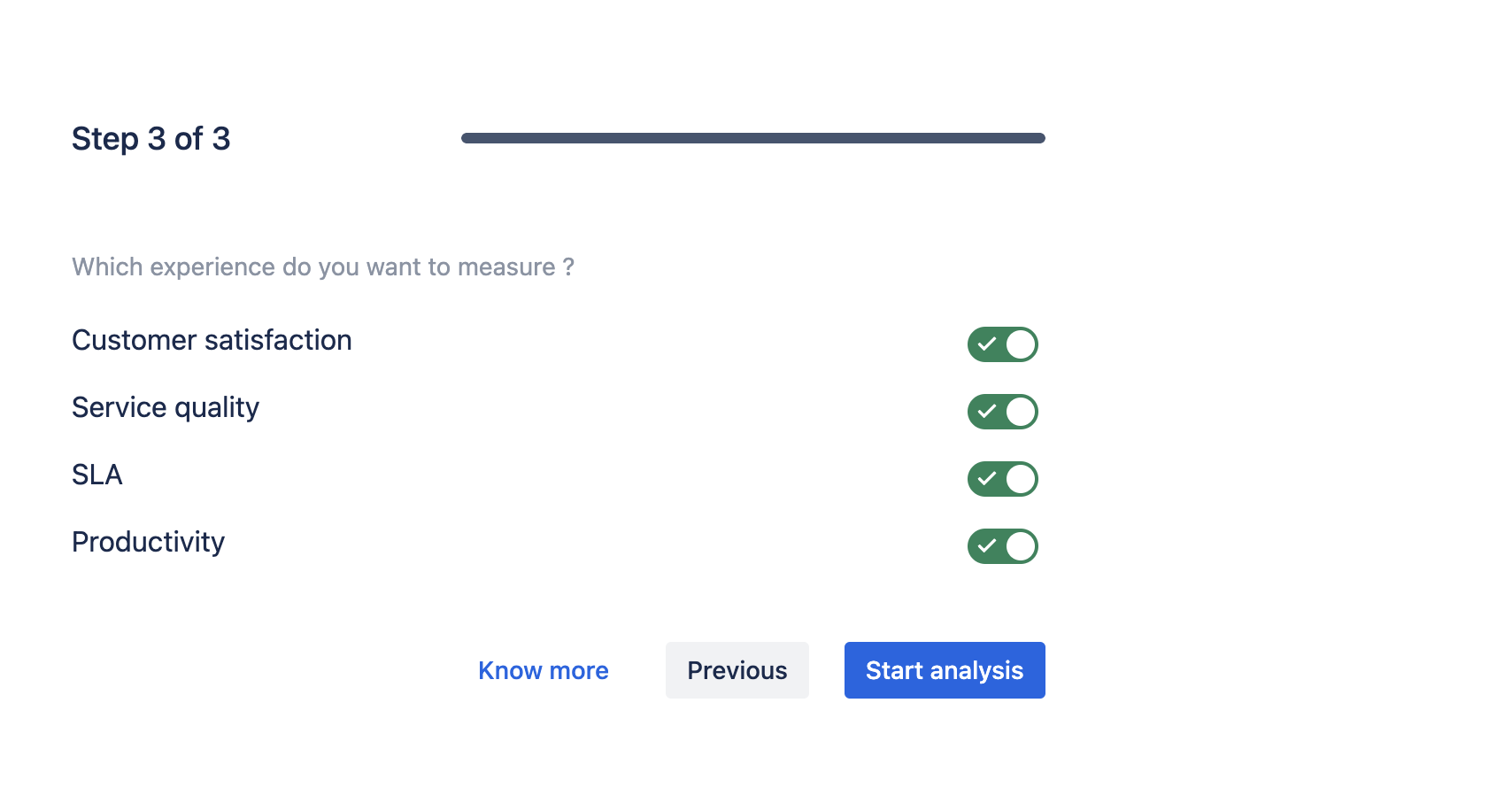 Select all experience analysis for a 360° view of your IT service and click on “Start analysis”