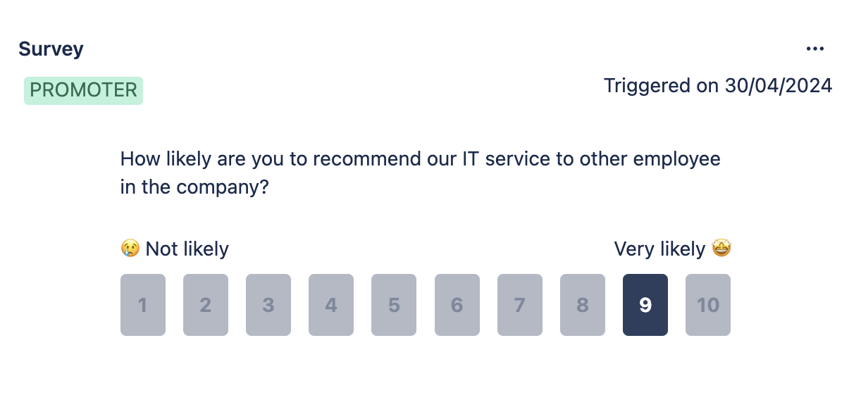 within the Jira Service Management portal, your customers will access directly on their request a rating scale, from 1 to 10, to evaluate your services.