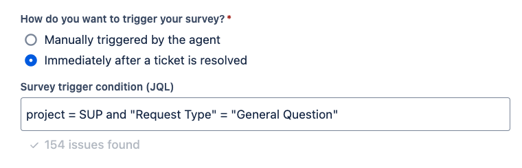 surveys can either be triggered manually by your agents or automatically based on a JQL condition