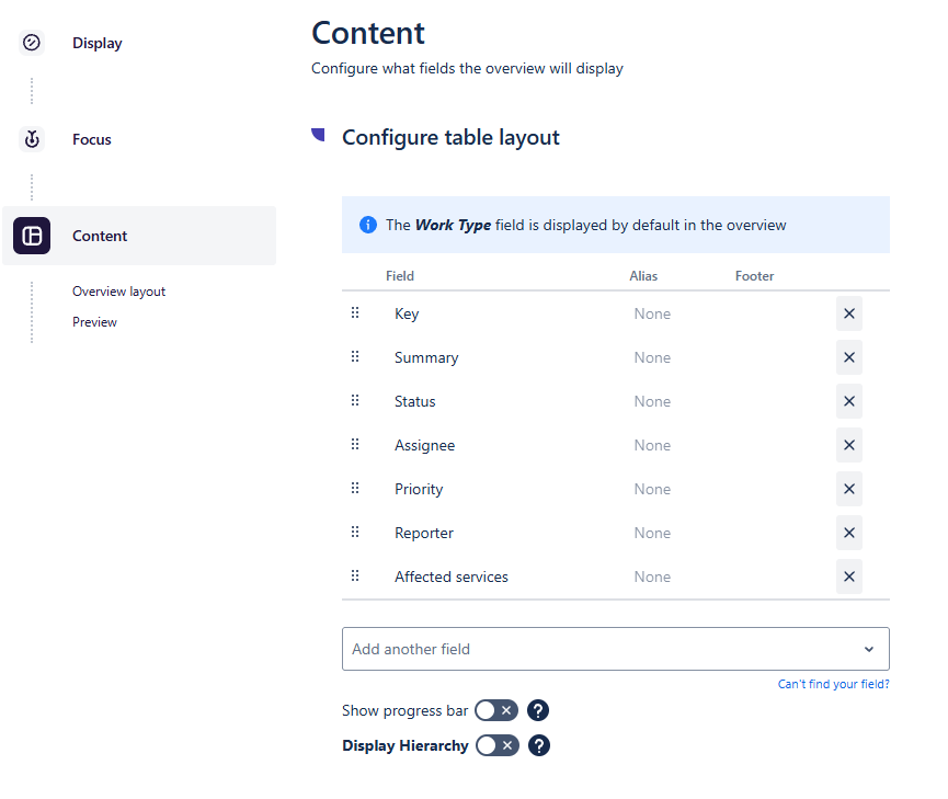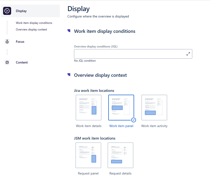 Pro-tip: Use display conditions to restrict the overview to work items matching specific JQL.