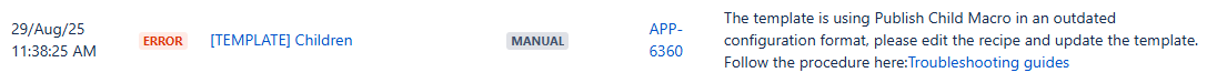 Repeat these steps for each Publish recipe that includes a Publish for Child Issues macro.
