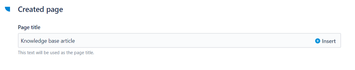 4 - In the "Created page" section, use the Page title text field to define which title will be used for the page created by the recipe.