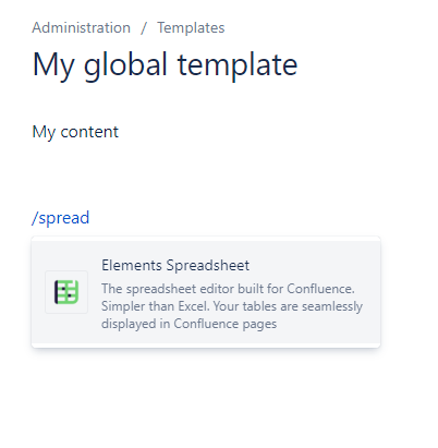 This feature relates to Confluence Cloud. However, Spreadsheet is also compatible with global templates in Confluence On Premise.