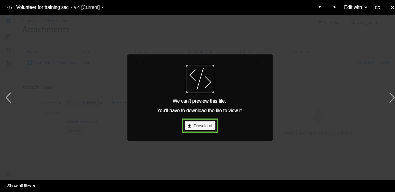 First, go to your Confluence page containing the Spreadsheet document and open the page attachment: