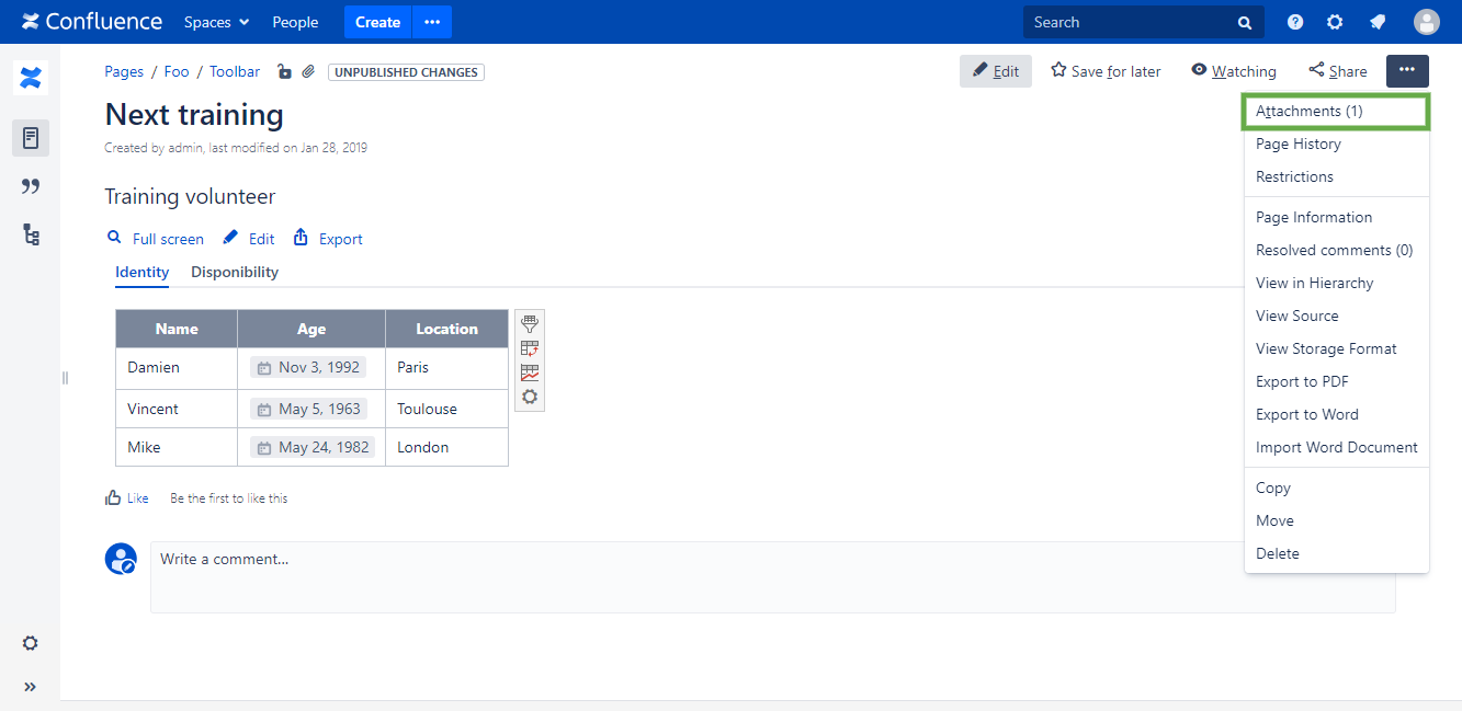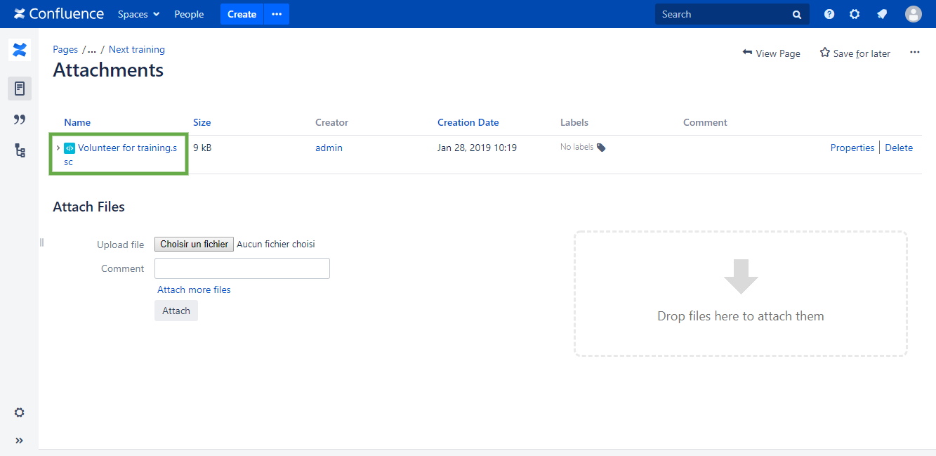 Open the Confluence page where you want to import you Spreadsheet document, then open the page attachments.