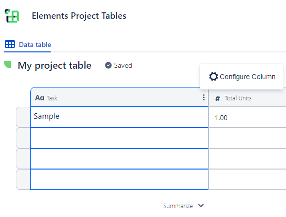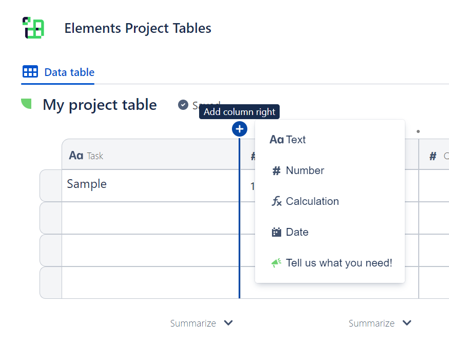 Project Tables currently support the following column types: